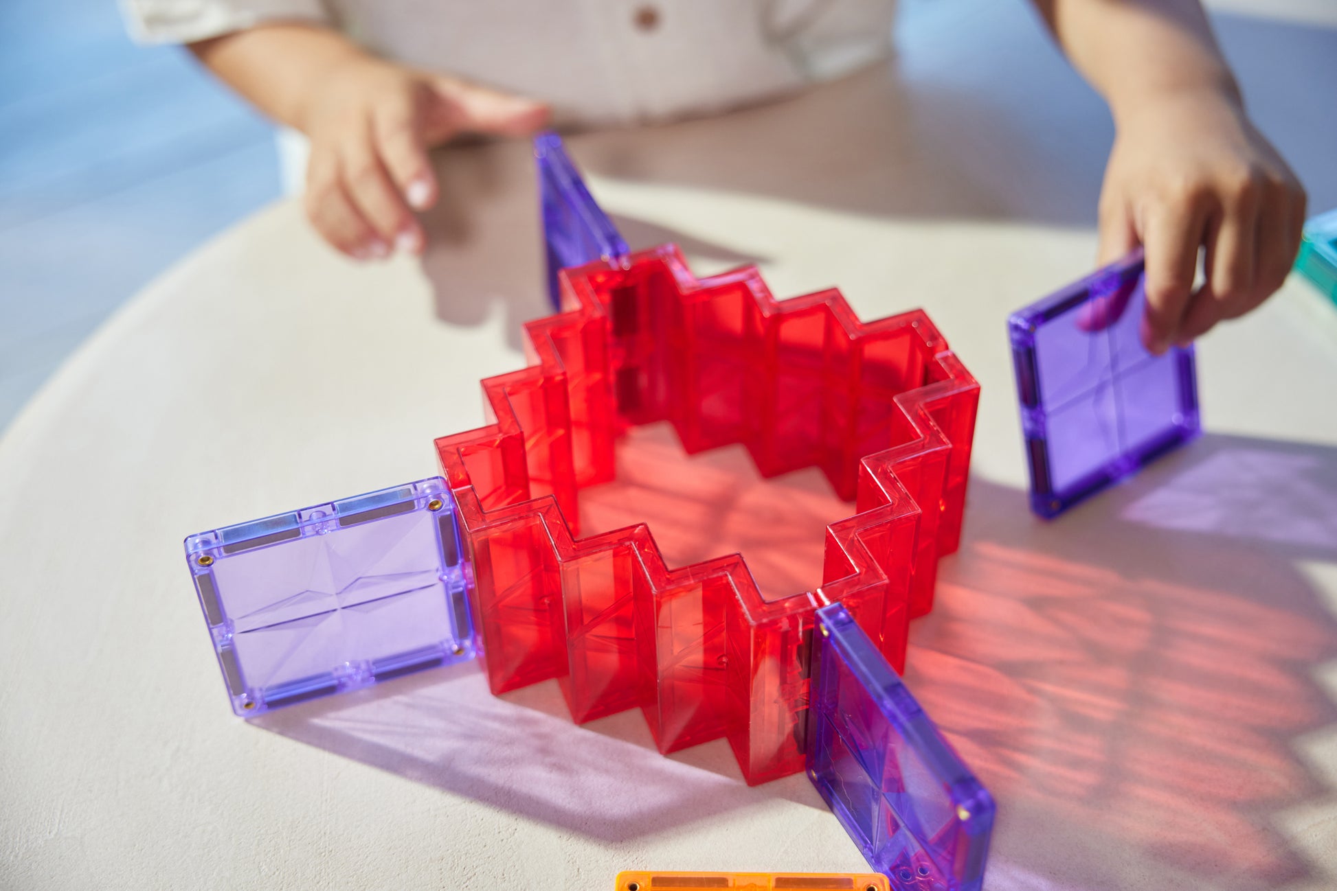 Geef je bouwwerken een extra dimensie met de Cleverclixx Stairs Set Intense! Deze uitbreidingsset bestaat uit 34 bouwstukken in diepe, intense kleuren die perfect passen bij je bestaande magnetische tegel collectie. In deze set zitten 4 unieke traptreden, maar daarnaast ook 18 vierkante tegels, 4 driehoeken, 4 raampjes en 4 grote driehoeken.