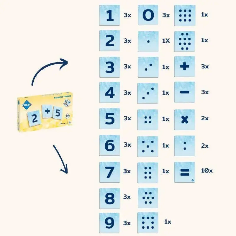 Set van magneettoppers in de uitvoering van wegen, bestaande uit onder andere kruispunten, rotondes, drempels en meer. Het is een uitbreidingsset: voor het maken van een weg is een basisset magnetische tegels van Coblo nodig om de magneettoppers op te klikken en zo met elkaar te verbinden, want de toppers zijn van zichzelf niet magnetisch. Hiermee kunnen kinderen keer op keer een nieuwe route maken om met hun autootjes overheen te rijden. Daarnaast is het erg leuk te combineren met bouwsels van Coblo, poppetjes, auto’s en nog veel meer.